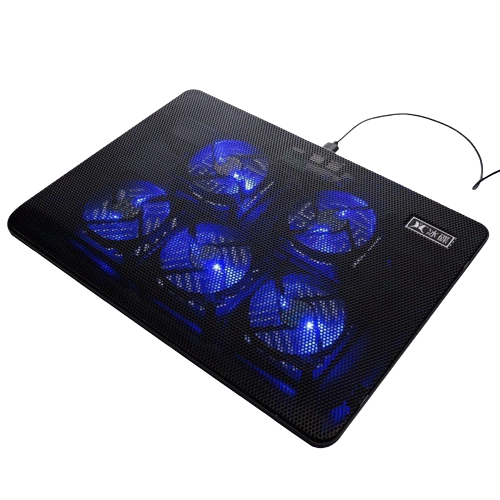 - Đế tản nhiệt Cooler Pad V5 5Fan sử dụng quạt với kích thước khoảng 8cm x 8cm x 1.5cm làm mát hiệu quả, độ tương thích cao cho phép sử dụng laptop lên đến 17inch.