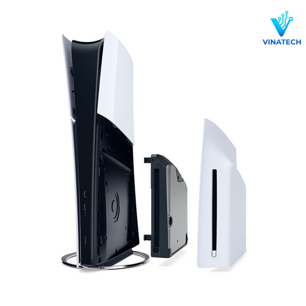 So với bản PS5 tiêu chuẩn, PS5 Slim được tinh chỉnh lại thiết kế với kích thước gọn gàng hơn, dễ dàng đặt trong nhiều không gian giải trí khác nhau. Tông màu trắng đặc trưng vẫn được giữ nguyên, mang đậm phong cách hiện đại và tối giản của Sony.